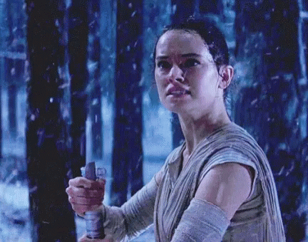 In the distance, Rey thought she could see someone and lifted her head to see.